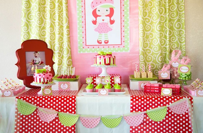 Chủ Đề Bữa Tiệc Dâu Tây rực rỡ, với tông màu đỏ chủ đạo, kết hợp màu xanh dịu nhẹ, bắt mắt ...